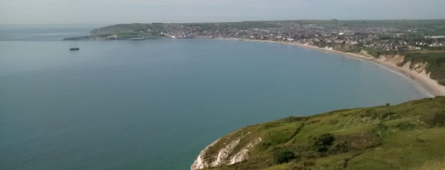 Keep to the path, eventually passing through a kissing gate before ascending stone steps onto the steepest part of the climb up to Ballard Down. Just before the top the South West Coast Path diverges to the right through a gate but keep going a little further up to the ridge top (the Purbeck Way) to enjoy the fine views over Poole Harbour, the world’s 2nd largest natural harbour. On the top turn right through a farm gate and continue along Ballard Down with clear views of the Isle of Wight and Bournemouth in front of you.