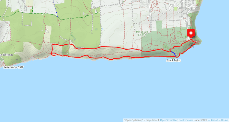 From Dancing Ledge head inland and up the slope until you reach the stone wall at the top with the route to Langton Matravers via Spyway Barn ahead. Keep to the seaward side of the wall and start heading eastwards along the visible track, dropping down into a dip then up the other side keeping right but without losing too much height. On the top grassy field you will see a gate to the right and from here the footpath continues east along the seaward side of the stone walls before opening up on an uneven ridge with great views east to the Isle of Wight. The route finally drops to meet the service road to the Anvil Point Lighthouse where you turn left and follow the road past an old quarry with a donkey powered capstan back to the car.