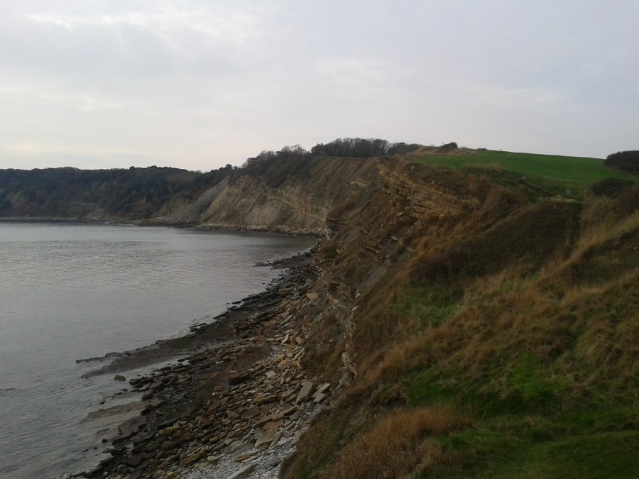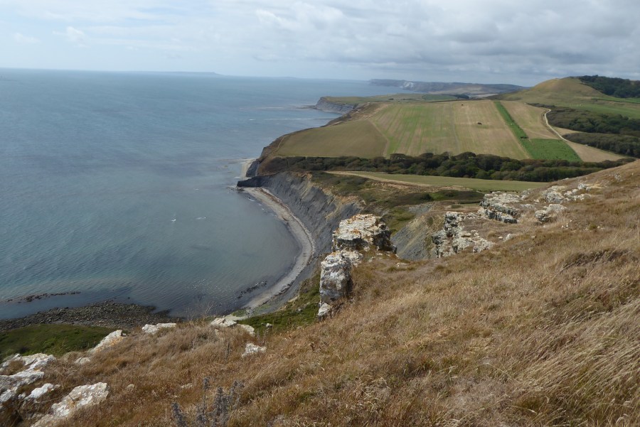 The descriptions and guide to the first half of the walk starting from The White House (marked with red pin) can be found in the Swanage to Durlston, Durlston to Dancing Ledge and the St. Aldhelm’s Head walks. In the latter, after passing the Royal Marines Monument on the cliff top at Emmetts Hill and then the footpath to the Renscombe Farm car park, keep straight following the South West Coast Path that descends ahead into Hill Bottom [note the alternative path left that leads down into Chapman’s Pool is steep, plus the crossing in the valley to Houns-tout Cliff can be unstable especially during wet periods]. At the Hill Bottom road turn left, towards and past a row of cottages and then follow the farm track around the base of the hill, looking for a left path that crosses towards a gate on the other side of the valley, and then head back towards the coast and to the foot of the steep steps leading up to Houns-tout cliff. At the top fine views towards Swyre Head, Clavell Tower and on towards Lulworth can be enjoyed before heading north and inland with the Encombe House estate below on the left. The footpath enters a wood before exiting onto the road by a car park. Turn right to the village of Kingston, where a good spot for a drink or lunch can be found at The Scott Arms with fine views over towards Corfe Castle and the next phase of your walk.