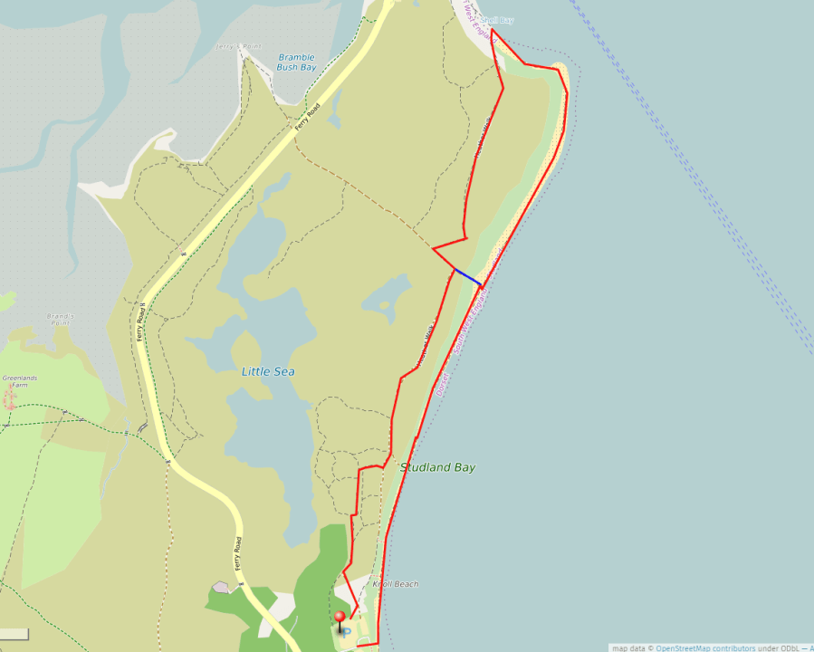 At the beginning the heather / sand dune trails are well defined, but the further you progress the paths become less obvious and more of a sandy track between the heather. Look out for the yellow (sand dunes trail) and purple (heather walk) marker posts to guide you (see map above left), but part of the fun is picking your way up and down the dunes, and from time-to-time doubling back when you realise you have made a mistake! Just keep the sea on your right, but do not be mistaken by the Little Sea lagoon on your left! Eventually a more well defined path running parallel to the coast will be encountered and you follow this and the purple markers as far as the Ferry Rd/beach access track which cuts across at right angles. To choose the shorter version of this trail turn right here (marked in blue on the map above) and upon reaching the beach turn right and this will take you back along the shore to Knoll Beach and the car park. For the longer walk turn left on this access track and then take a right footpath, again following the purple heather walk. Continue on this track which, after crossing a small footbridge, brings you out onto Shell Bay, with Sandbanks across the water. Turn right, passing the largest dune on the end, and begin your beach walk southwards and back towards Knoll Beach.